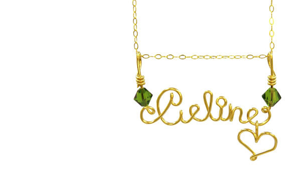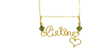 14 Kt Gold Filled round wire Necklace with non removable chain, customized piece for your name and your partner with two of your childrens.